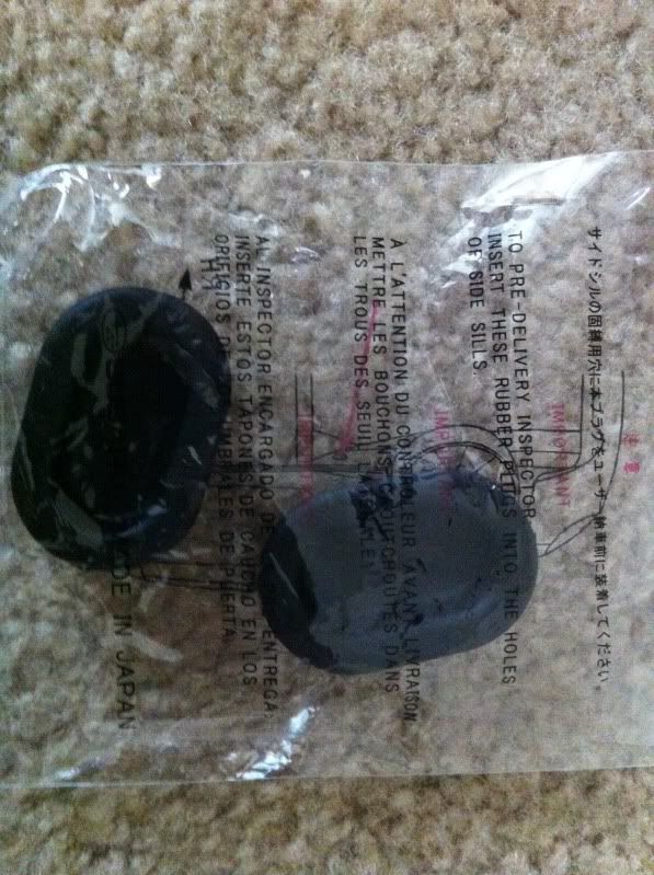So after I drove my new FR-S home a few days ago, I noticed a package in the glove compartment. It says "To Pre-Delivery Inspector," Insert these rubber plugs into the holes of the side sills. I just thought they were extra pieces not used but curiosity got the best of me so I googled "rubber plug side sill" and found this link (BRZ forum):