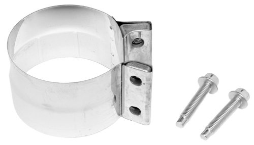 Welding will also make it impossible to rotate the muffler relative to the rest of the system, so any misalignment with the valence would be permanent. I just ordered a serious Walker SS band clamp (#33226 - $12 delivered from Amazon) that looks like it ought to do the job: ![]()