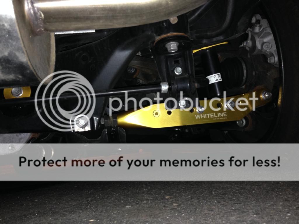 For sale are my Whiteline Rear LCA's. From what I understand these are difficult to get your hands on in the states. They have marks, mostly on the interior of the arms, from install and removal. There are also small chips on the front side of the arms from road debris which is normal, but you can't see these when installed. Looking for a simpler setup. Asking $350 + shipping. (I need to figure out the OEM bolt situation before I can pull the arms, see this thread: http://www.ft86club.com/forums/showthread.php?p=1978011)