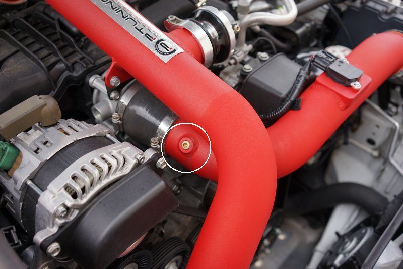 But as far as power gain, you can't beat it. If you have access to e85 nearby, by all means try it out.For those that don't have access to e85, you might want to give our WMI system a try. Since the shop FRS has both our prototype Flex-fuel racing swirl pot fuel system and our pnp WMI System in place, I'll be running the WMI for the street and most track events and switch to e85 (actually e70) when I want to max out the turbo's potential. Keep in mind, our turbo system comes with a pre-welded WMI bung on the upper IC piping where the MAF is mounted so when you install the WMI kit, you simply remove the brass plug on the WMI bung to install the WMI nozzle. No need to remove the piping to have a bung welded on and have to re-powdercoat the piping--the hard part was already done for you. ![]() ![]()