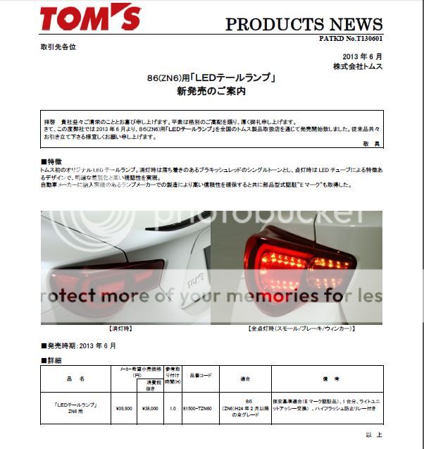 **IN STOCK & READY TO SHIP NOW!** **PM FOR 4th of JULY SPECIAL BLOW OUT PRICING!!!** **We are a AUTHORIZED TOM'S USA DEALER!** **These TOM'S LED Tail Light kits are for USDM FT86 and come with valid TOM'S USA Warranty! Plug & Play for USDM vehicles with TOM'S relay to replace your OEM relay under the dash. Beware foreign grey market imported TOM'S items do not have TOM'S USA Warranty & are usually not plug/play & are not authorized to be sold in the USA.** Genuine JDM TOM'S LED Tail Lights for FR-S / BR-Z at a 4th of JULY INDEPENDENCE DAY CELEBRATION special price shipped and paypal'ed!!! IF you see a lower advertised price from an Authorized TOM'S DEALER we will beat it (within the 48 continental states - slightly higher for HI, PR, and Canada) Local Tri-State NY, NJ, CT, and PA owners can receive FURTHER DISCOUNT if picking up locally at our shop on Long Island, NY 11735. PM for details and all locals are welcome! If you would like any other Tom's product please do not hesitate to PM for availability and price! Cheers! ![]() Will @ 468Power ![]() ![]() ![]() ![]() ![]() ![]() ![]() ![]() ![]()
