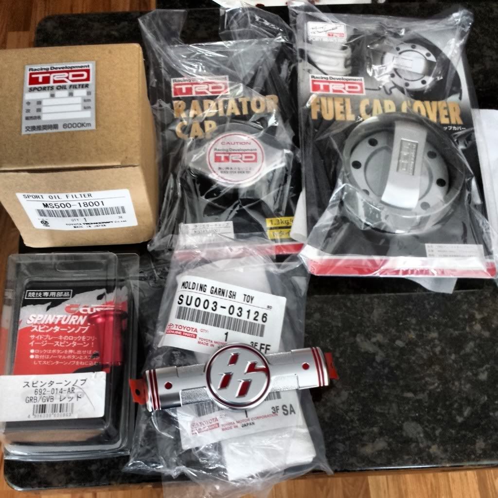 Competition Clutch - Stage 4 Clutch 6 Puck Sprung Competition Clutch - Lightweight Flywheel TRD - Radiator Cap TRD - Gas Cap TRD - Oil Filter JDM Fender Piston Badges Cusco Safety 21 6 Point Roll Cage Cusco E Brake Spin Turn Knob (red) Thanks to @vividracing for all the help!!! ![]() ![]() ![]() ![]() ![]()