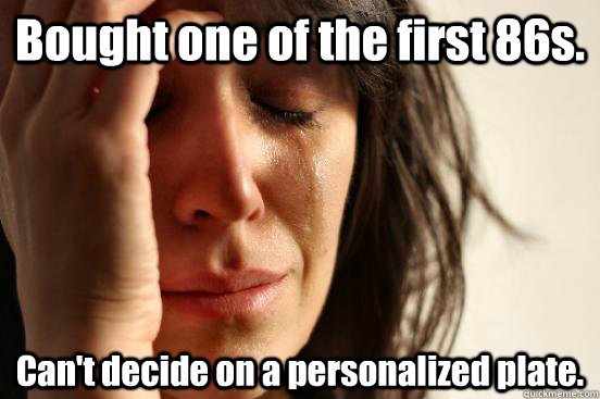 I thought I was going to be clever and grab "86" in roman numerals. Not so much. I ended up with "ZC6 R."