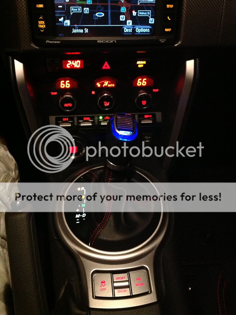 The shape works well for the AT, however. I drive in manual mode 95% of the time (only putting it in automatic for bad bumper-to-bumper traffic), and use the shift knob more than the paddles on the street. The paddles are best suited for freeway driving. In manual mode, you only move the knob forward and rearward, so the shape lends itself to that motion well as opposed to a ball design. ![]() ![]()