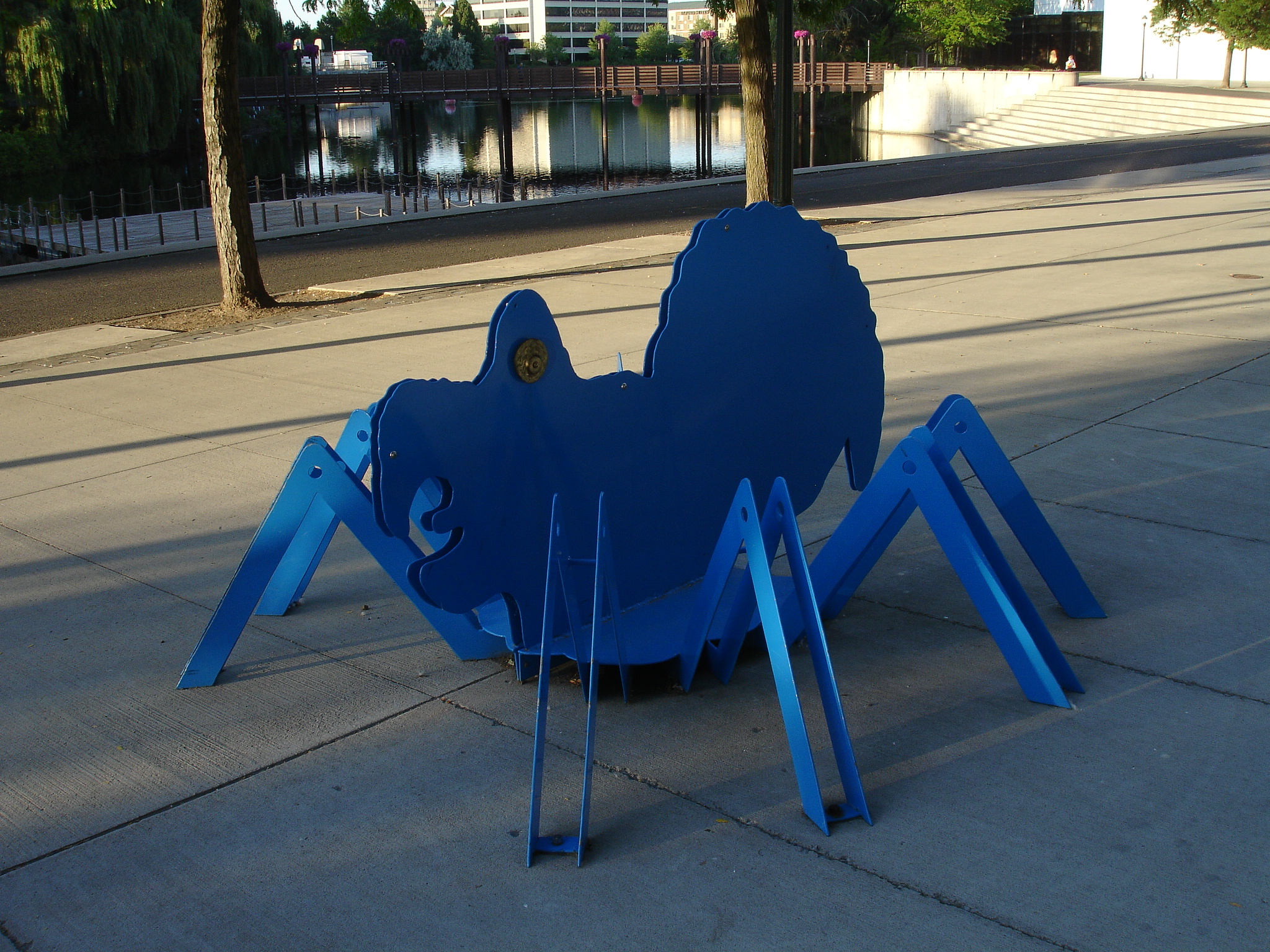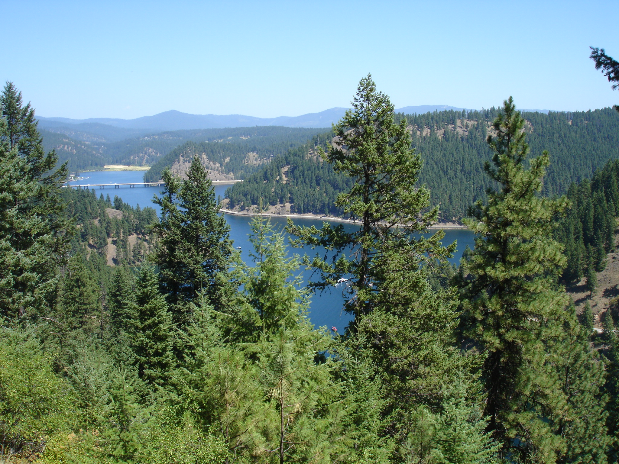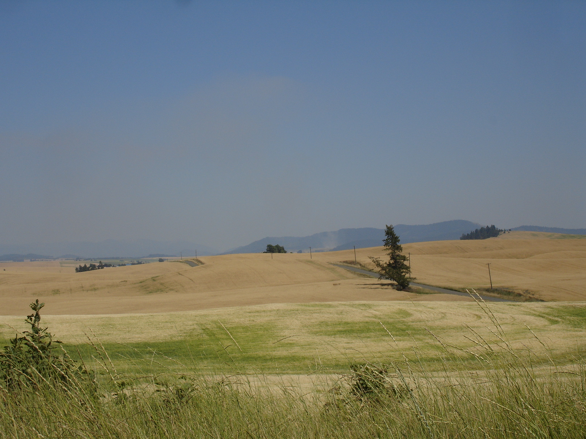 Left Kalispell west on Hwy 2. Was nice, mostly 60s and 70s all the way to Sand Point. Turned south on 95 from ther to Bonners Ferry. From there south to Cour d'Alene was endless construction and traffic. ![]() From Cd'A I took 97 around the east side of the lake. Wonderful winding road along the lakeside, then up over hills to other bays along the way. ![]() ![]() The south end of 97 joins up with 3. Another great road with tight, banked corners you can carry some speed in. Then onto 5 west to Plummer. Very similar to 3. Whee! Didn't get any pictures along there because racecar. When I got to Plummer at about 2:00 I could see a plume of forest fire smoke to the NW. I had been planning on turning north to Worley, but it looked like the smoke was coming from there. I took a rural road directly west to Fairfield then 27 north to Spokane. Back in the Palouse again. A shot back east to the fire. ![]() A bug at the Spokane River Park.