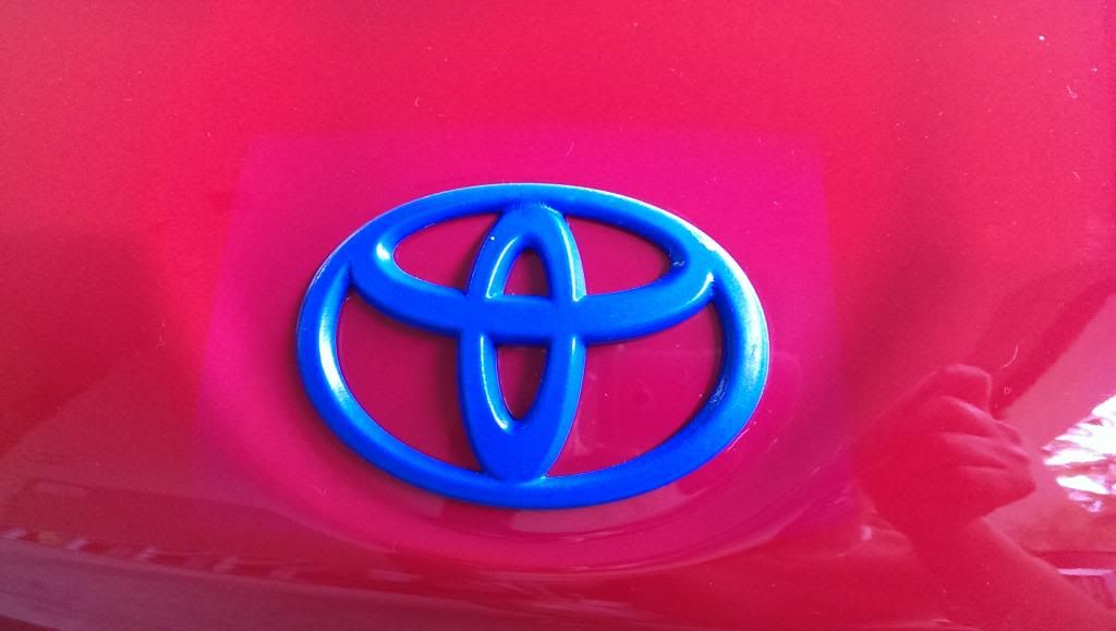 I'll post a picture of my plasti-dipped, then color matched badges in a bit. I painted my factory rims to gunmetal, then painted my new "Toyota" badges the same color; looks good on Raven black. |