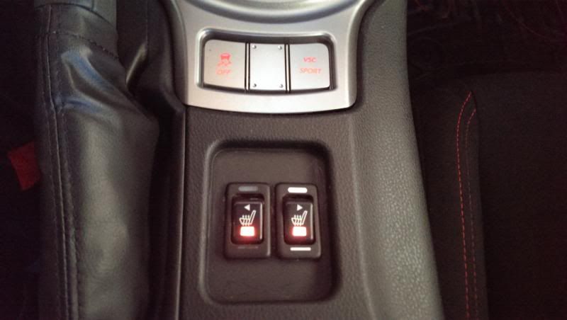 installed my heated seat elements today. the seat warm up as expected as I had a set in my celica gt-four. only problem is the OEM switches I bought off ebay were not off a BRZ/GT86 but off some used JDM subaru model I don't remember. so the clips on the switch to attach to the plastic trim is made to fit thicker trims, where as the FR-S center console plastic is thin, so my switches kind of wobble in place. i intend to buy OEM BRZ switches now and I'm hoping the connectors are the same.