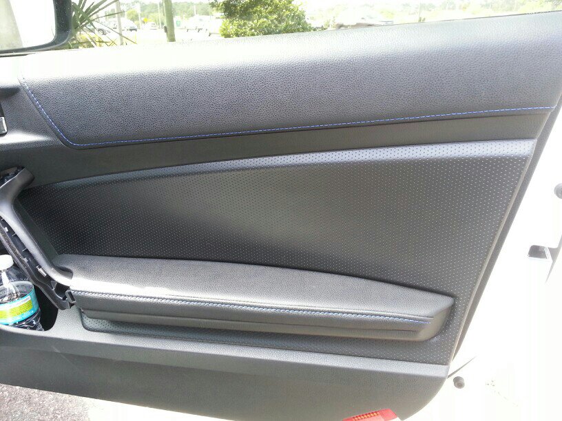 I wouldn't say it's necessarily screaming for blue stitching; it's a matter of personal preference, really. Red and black are pretty standard "sports car" interior colors, so they work... but blue accents can look good as well, especially if done right such as in the example above. And it probably depends on the exterior color as well, dontcha think?