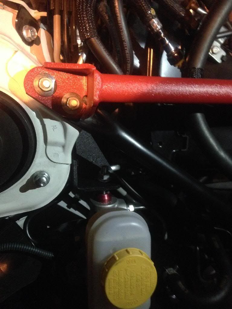 Next up was the Grimmspeed battery tie down and master cylinder brace. With some nice lighting help from @gatorbushmen, we knocked this out in no time at all. Battery tie down was pretty straight forward, but the mcb was a tight squeeze because I elected to no take off the strut bars for the install. So I just took my time but it did not take much time to do. My initial impressions were great. I tightened that sucker down and then hit the brake. Immediately I could tell there was less brake travel. Slammed on the brakes a few times to feel it and I could really feel how much "sturdier" the brakes felt. Pretty happy with all this stuff!