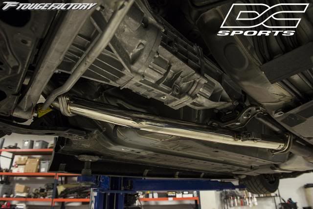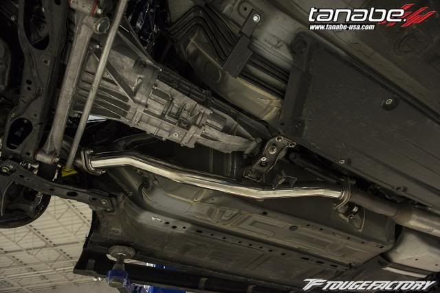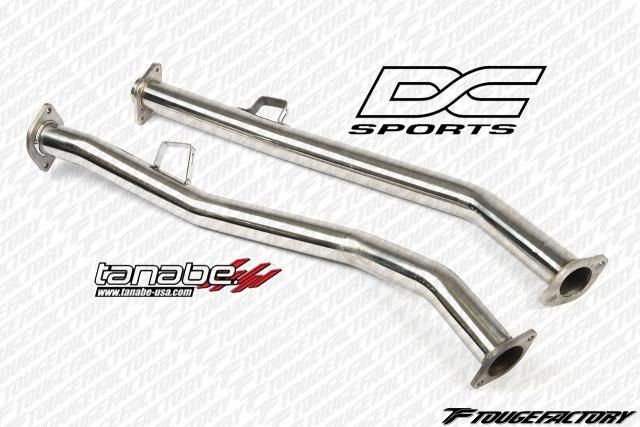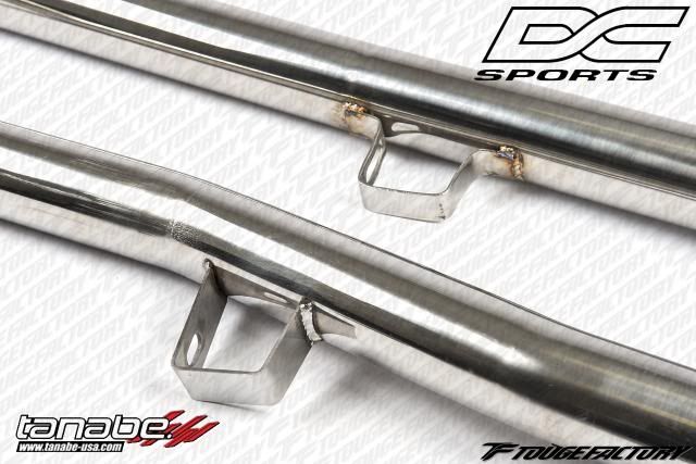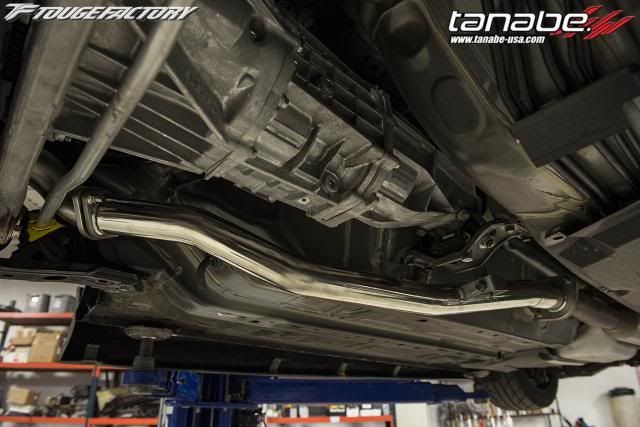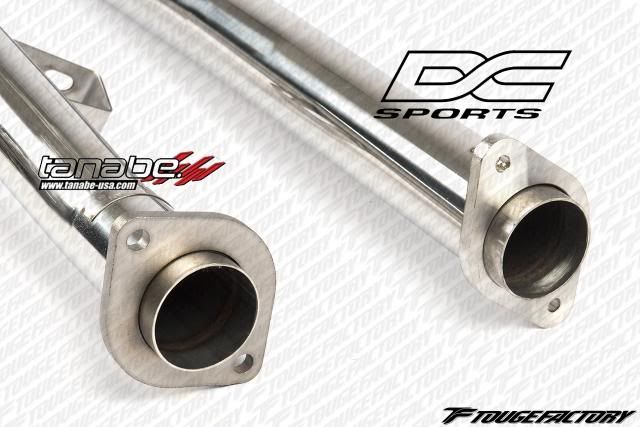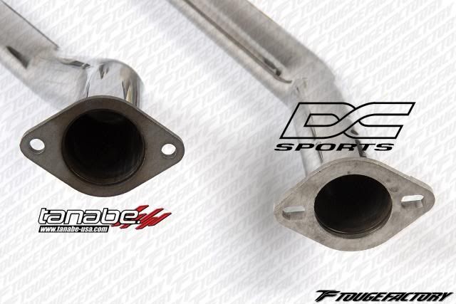 both were 2.5" outer diameter. Most front pipes we've installed are all measured outer diameters, and the I.D was approximately 2.37." You can see that the DCsports lacks the bends. ![]() Another angle ![]() One more to show the bends ![]() Flange: ![]() Other Flange ![]() Hanger for the front pipe: ![]() INSTALLED PICS OF DCSPORTS Without the additional bend by the transmission mount, the piping sits about 8mm away from the transmission mount. Length wise, fitment was better then the Tanabe, where we did not have to pull the catback forward at all to put in the bolts. ![]() ![]() INSTALLED PICS OF TANABE Tanabe allowed for much more room between pipe and the transmission mount due to additional bends. At least 1" gap between the two. ![]()