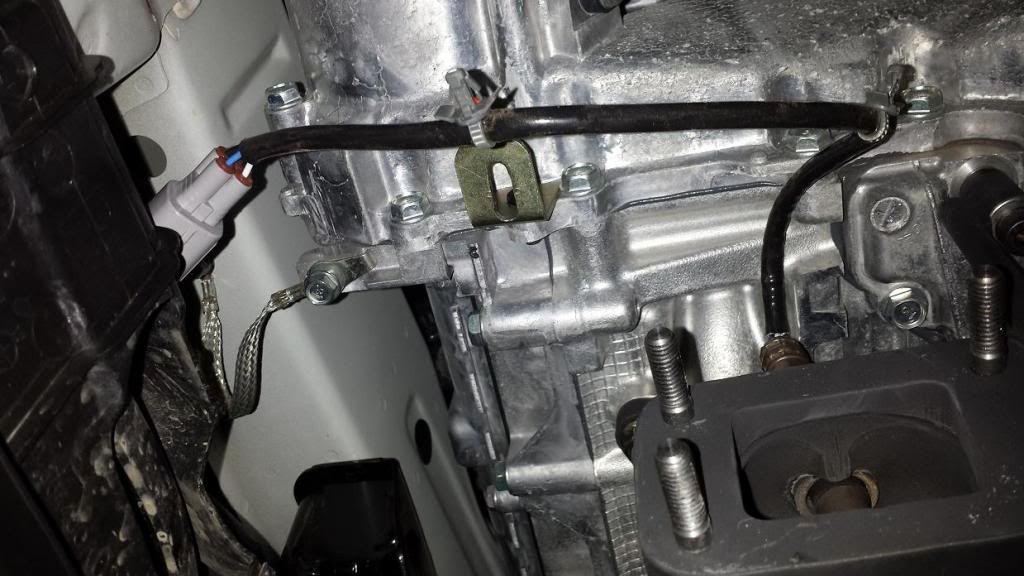 The instructions call for installing a right angle bracket. I found a location with a spare bolt hole that looked the same as the instructions. The problem seems to be that this puts the bracket on a different plane to the bolt that is used for the grounding strap.