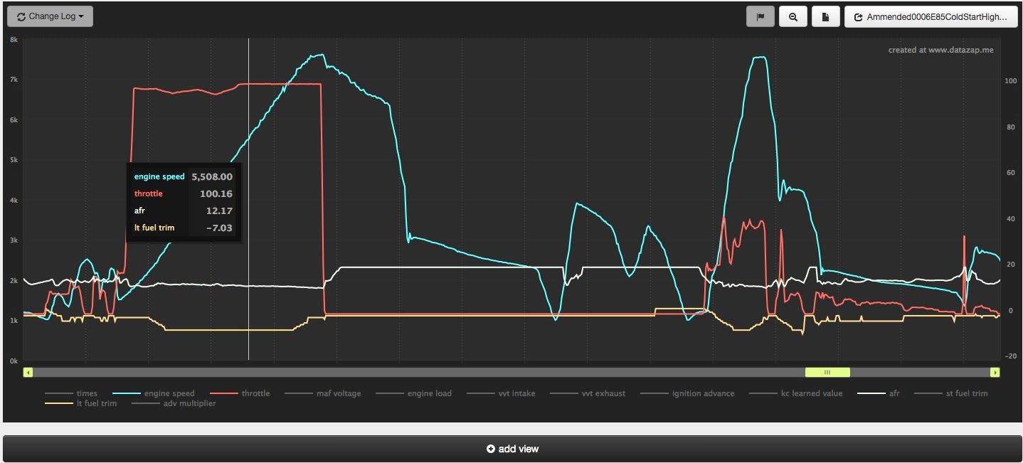![]() Notice how your LTFT under load dropped to -7.03% to account for the lower ethanol content in your fuel. Expect to see the same behavior with the new map (or after every new flash) after some more driving/learning time. Right after your flash, LTFTs will be 0.0%. As you drive more, they will start to move in the direction you need them to move in order to achieved the desired AFR under load