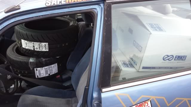 4 wheels/4 tires barely fit in my winter beater haha ![]() ![]() ![]() ![]() I must say, of all my years racing and modifying cars.. I've never seen a vehicles "attitude" change so drastically from a wheel/tire swap. She looks like a monster now! More to come! Should have more updates tomorrow.