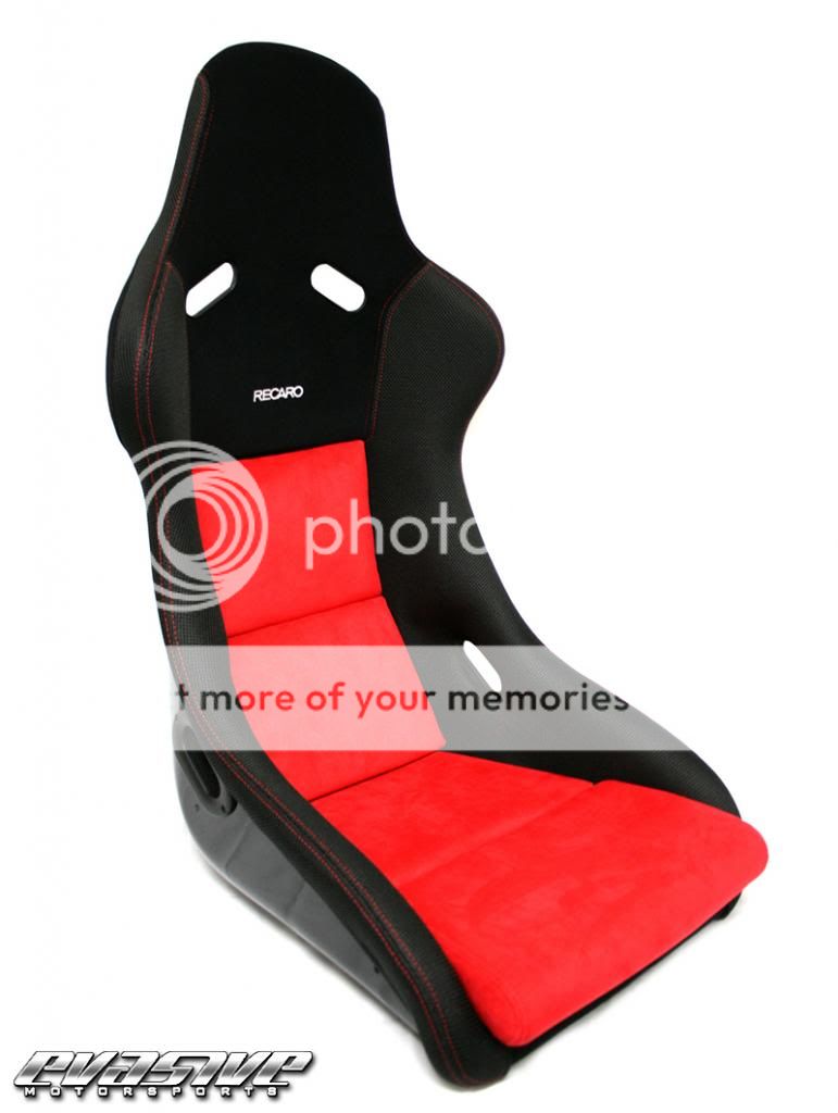 Now available limited edition Evasive spec Recaro Pole Position that features black velour head rest, black jersey sides, red suede center piece. This version of the Pole Position also features the classic double-red stitching. Finish is factory direct from Recaro for this limited edition seat, not available through any other dealer. NOTE: FIA Certified