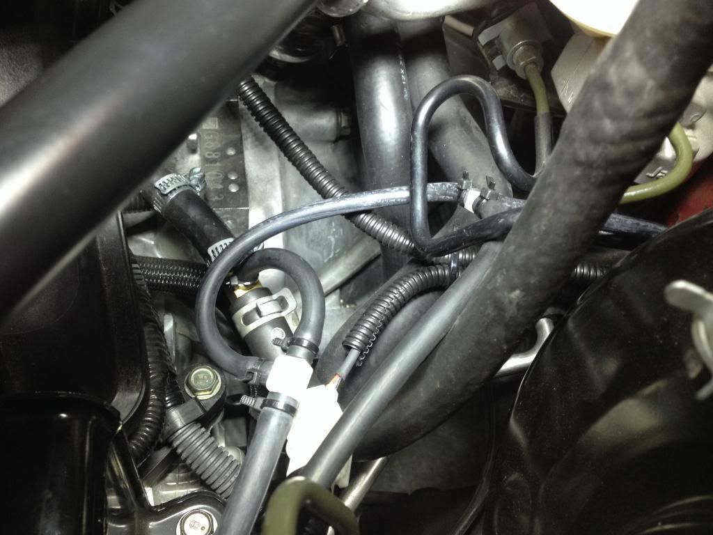 It looks like the tap from the brake booster line is correct as it's below the check valve. Where's that tube running to?