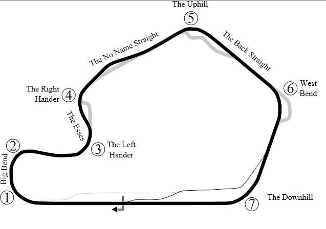 Skip the optional parts, the dark line here is the track as its driven by all but a few pro races: