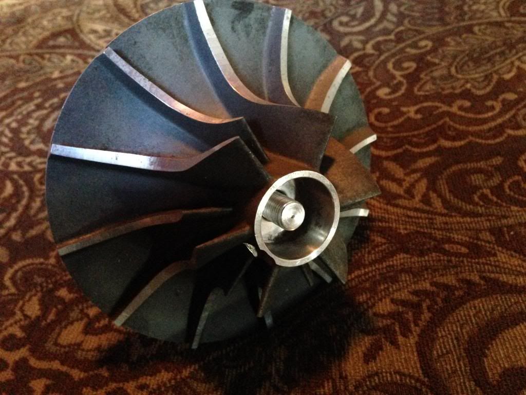 The SeaDoo compressor wheel diameter is 128mm vs. 70mm on the T3/T4 wheel. That's 82% greater speed at the outer edge at the if spun at the same RPM.
