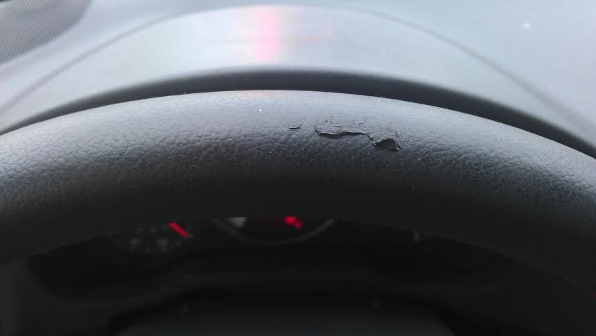 Looking closely at the picture, it seems that there's been a lot of wear to the steering wheel - there's some abrasion to the raised part of the grain. How many miles does your car have? |