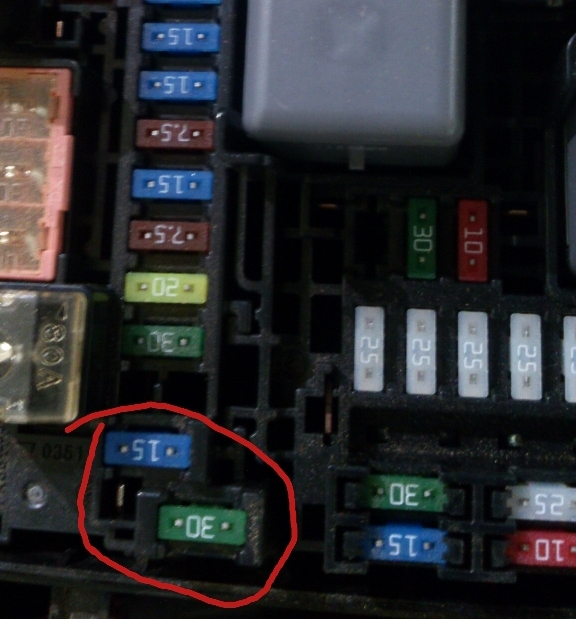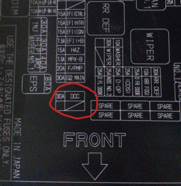The DCC fuse (30A) was never removed from the "delivery" position during PDI into its original location, instead, there was a (15A) fuse installed, here is the pic: It should be like this (pic form internet): fuse box cover picture to confirm: |