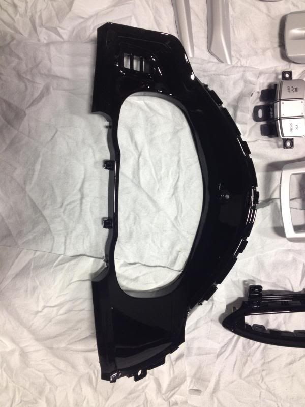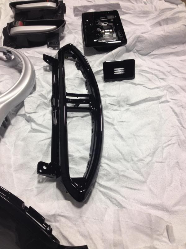 I dropped my dash panel off at Composite Solutions Inc. to be wrapped in carbon fiber. I dropped my trim pieces off at Sansossio Auto Body to be sprayed with ALSA Ghost Chrome and piano black. My interior is all done at JPM except for the steering wheel and B-pillar trim and should be headed back shortly. Can't wait to get it all together!!