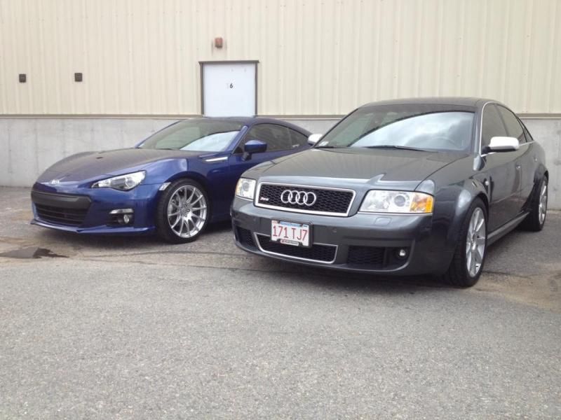 With the exception of the dashboard surround trim and the B-pillar trim, my interior is reinstalled. It looks, feels, and smells amazing! Could not be happier with the work that JPM Coachworks did. While I am not let down by the quality of work that Sansossio Auto Body did on the plastic pieces, the quality of the ALSA Ghost Chrome leaves me with some questions. The piano black pieces that I had Phil Sansossio paint came out incredible! The Ghost Chrome pieces? Came out like a bright painted silver; something I feel like we could've achieved with any silver paint had that been the desired result. Unfortunately it wasn't. I was hoping to achieve a finish not unlike the polished aluminum trim you see in many new Audis and other cars. So it may be back to the drawing board with those. I will say that they are still an improvement over the crappy paint Subaru used to spray the trim pieces. Anyway, PICS!!! Sorry for crappy phone pics; will take some with the Nikon as soon as the car's completely back together. The trim pieces arriving from JPM Coachworks: ![]() Everything unwrapped: ![]() ![]() ![]() Headliner: ![]() Trim pieces back from Sansossio Auto Body: ![]() ![]() ![]() Installation progress pics; made some room in the garage to work: ![]() ![]() ![]() ![]() ![]() Interior: ![]() ![]() ![]() ![]() Finished (almost): ![]() ![]() ![]() ![]() ![]() ![]() One of my favorite touches; piano black surround to the gauge cluster, heater vent, dome light and microphone grille: ![]() ![]() ![]() With everything buttoned back up, I fired the car up and took her for a little spin! Unfortunately I have a couple issues to iron out (as I've posted in the BRZ main forum); airbag light is on, and my dome light and heated seats are inoperable. So I'm not done yet, but we're getting there! And last but not least, gave her a bath and picked up the RS 6 from getting detailed and windows tinted; pics of the two together: ![]() ![]()