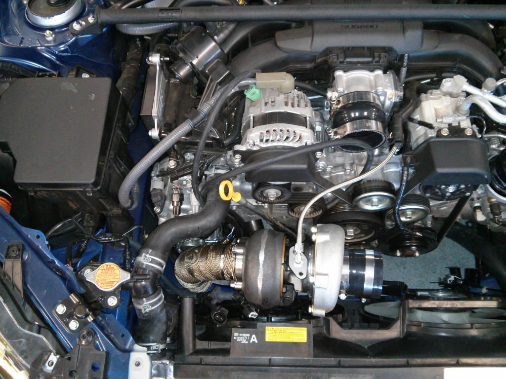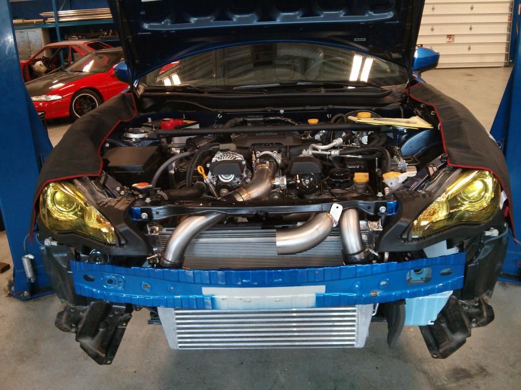 Another local customer getting our turbo kit installed! He came in asking about an E85 tune, and after a ride in my FRS, he had to go boost