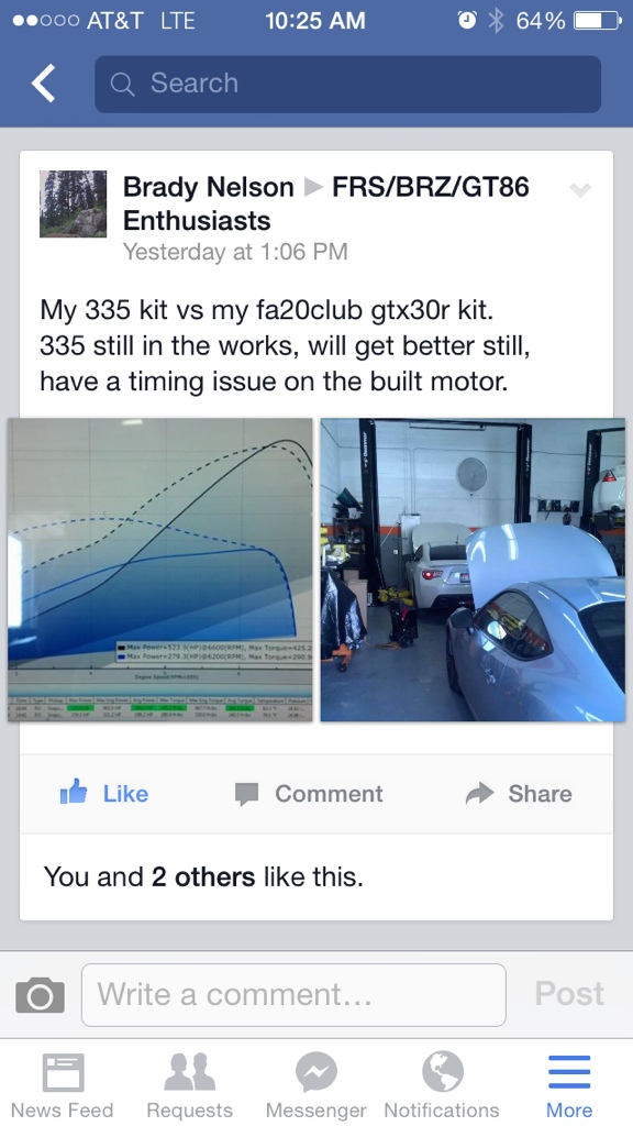 A guy on the FRS enthusiasts Facebook page just posted dyno numbers on his built engine with the 335 blower at slighty over 500hp to the wheels. Attachment 86526