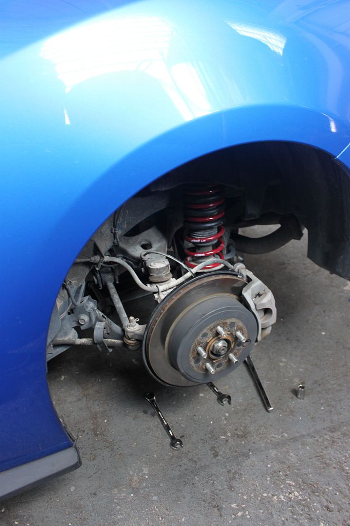A bunch of transmission/diff fluid changes, a Perrin exhaust install, and my Eibach Sportline Springs.