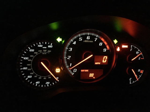 The cluster looked normal when I had the green wire removed a long time ago. I had the DRLs turned off a long time ago. The green wire is what gives the front signals the DRL look. I'm wondering if anyone else that did this mod has this issue, esp if they have LEDs in their side markers.