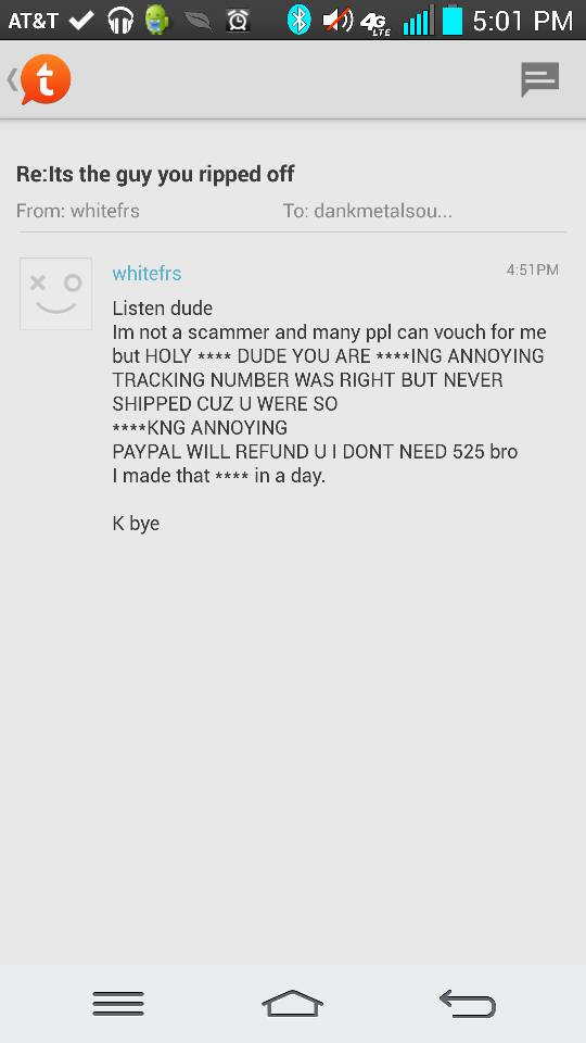 He's at it again. Sorry to thread necro, but he just ripped me off on IWSTI for $525 - just wanted to give you all a heads up. He told me his email was whitefrs@yahoo.com