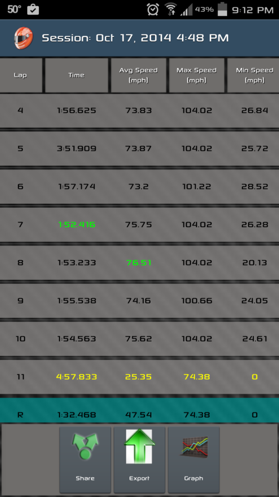 [ame]http://youtu.be/l-KmaoAZkYY[/ame] Conditions were pretty good for this event with nice, cool November air. Dropped just about a second from my previous best trying to be smoother in the corners and working being slower in and faster out of the corners. |