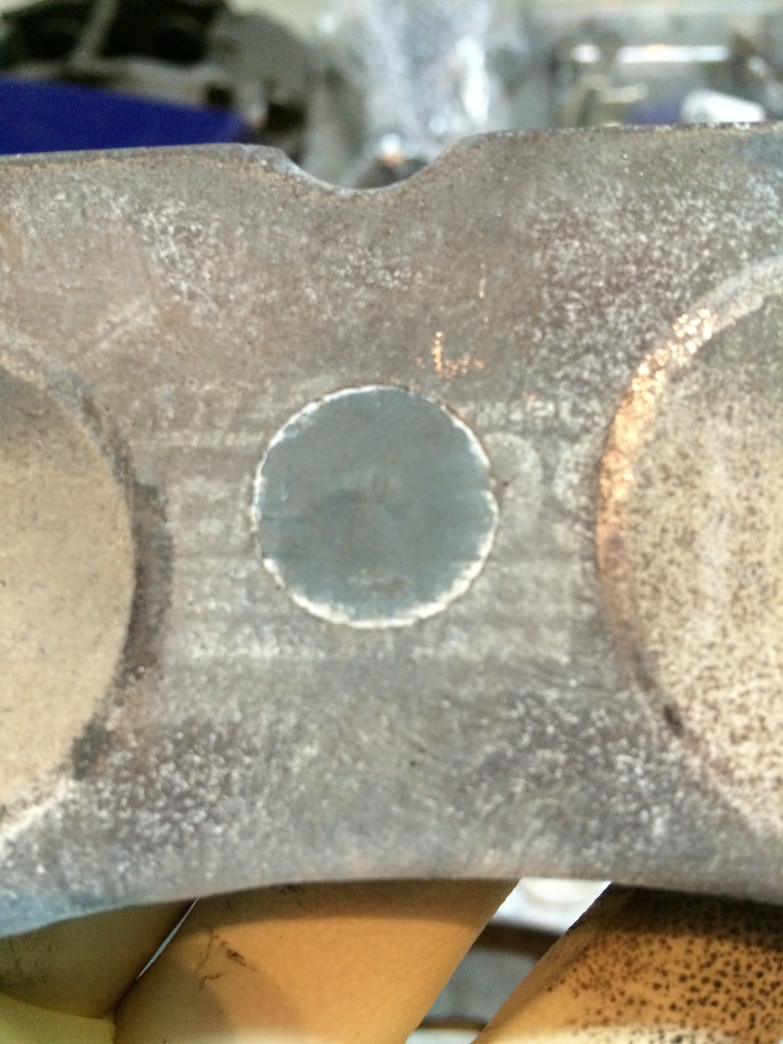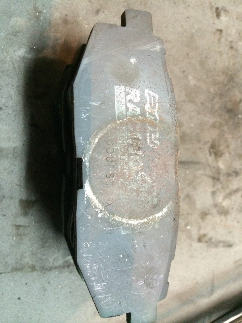 Project Mu 999 Racing rear pads (approx 9.5mm remaining, I think stock puck depth is 10mm?):