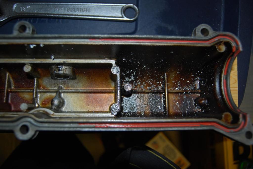In all these pics, you can see I tapped the valve covers using 8-32 taps to tap the valve cover baffles. I used phillips head 8/32 x 1/2'' flat head *stainless steel* screws with a washer to hold the baffles in place. I ran each screw into each hole to make sure they'd thread all the way down, removed the screw and applied red threadlock to each, then reinstalled the final time.