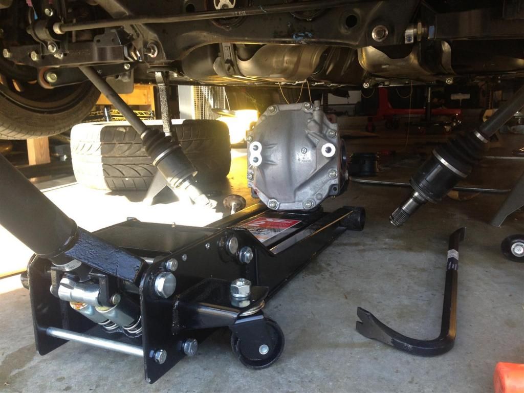 Small update. Decided to pull the stock differential. I really should upgrade the axles while I'm here, but I won't be able to drive the car hard for a few months so I'll just putt putt around until spring time.