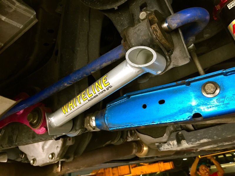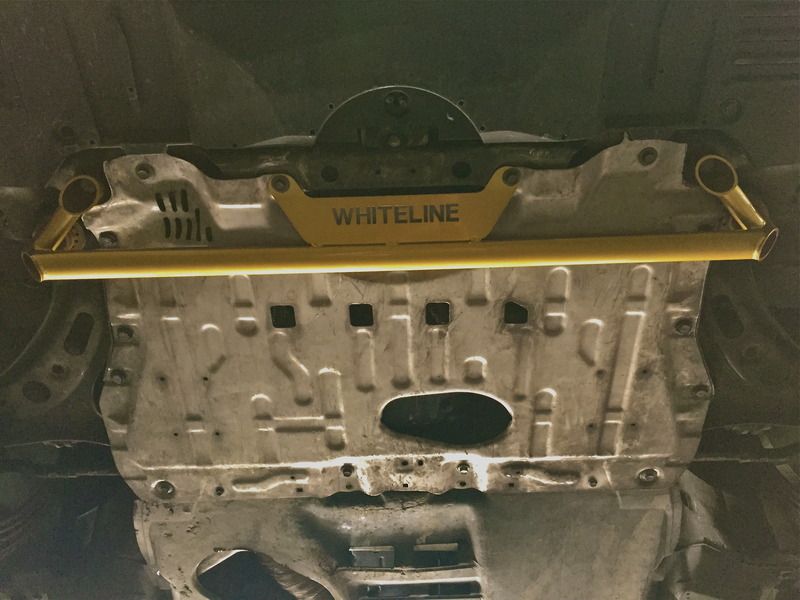 Whiteline Front LCA And Rear Sway Bar Brace Install (4-18-15) ![]() With the car pretty much set up where I want it to be power-wise and handling-wise, I'm left with enhancing the suspension with some bits and pieces. In my quest to "activate more grip", I went with more Whiteline products. The Whiteline front LCA brace is now a discontinued product and quite rare nowadays. ![]() The brace comes in trademark Whiteline gold, and looks well constructed with good welds and sturdy pipes. ![]() ![]() What diffrentiates it from the other braces is it has a plate with cutout letters for some undercar bling. The brace hangs a bit low, which for me is alarming. ![]() The install hit a few snags as the brace's mounting holes were a few millimeters off. We had to file the holes a bit to make the brace fit. I really don't know if my car's frame is out of whack, or the brace is. ![]() The bar looks really pretty installed. Let's hope it works as good as it looks. ![]() ![]() Moving to the rear, the Whiteline rear sway bar brace bridges the gap of the sway bar mount and the subframe. This helps prevent the sway bar from twisting excessively and stiffens up the mount for sure. ![]() The part looks solid, with good looking welds and finished with trademark Whiteline gray paint. The paint on some parts were flaking off though, so this could be a problem for those people whose roads use salt. Fortunately for me we don't get snow in this part of the world. ![]() Here's a pic with the stickers on. Added a few hp there. All these under chassis parts want me to get an under car detail soon. ![]() Install was pretty easy, as the mount holes lined up perfectly. The install took a bit longer than expected because of a stripped sway bar mount bolt. Other than that, the rear install went smoothly. ![]() Quick impressions after the install, the front brace made turn in slightly more responsive, the steering felt a bit lighter. The rear end feels more solid after taking some familiar street corners during my commute home. I will try to test how these mods feel at the track and report then. As for now, any small enhancements to the cars handling are welcome.