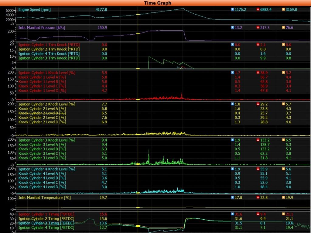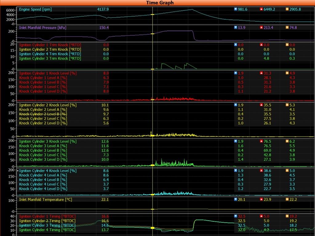 A few points: 1) if you've got a boosted engine with something suppressing knock (straight E85 for example), the DI is probably superfluous at best and a liability at worst. There's a lot of mixing and wall wetting problems avoided by just getting rid of it. 2) Whatever this other person who turned off the DI in the ISF did, we don't know what injection timing he was running on the PFI injectors. If that was more optimized his problem could have potentially been avoided. 3) Toyota already has a turbo DI version of D-4S in production. It's in the Lexus NX. It's significantly different from this engine. 4) Knock limit is mostly opinion, unless you can hear the engine rattling with the naked ear. Then it's self-evident. You would need to provide details on how you set your center frequency, gains, and other filtering parameters. "It knocked less because Motec said so." With the stock ECU you are trusting the decisions of whoever set the signal processing at Subaru, but now with an aftermarket system it's just guesswork at best. |