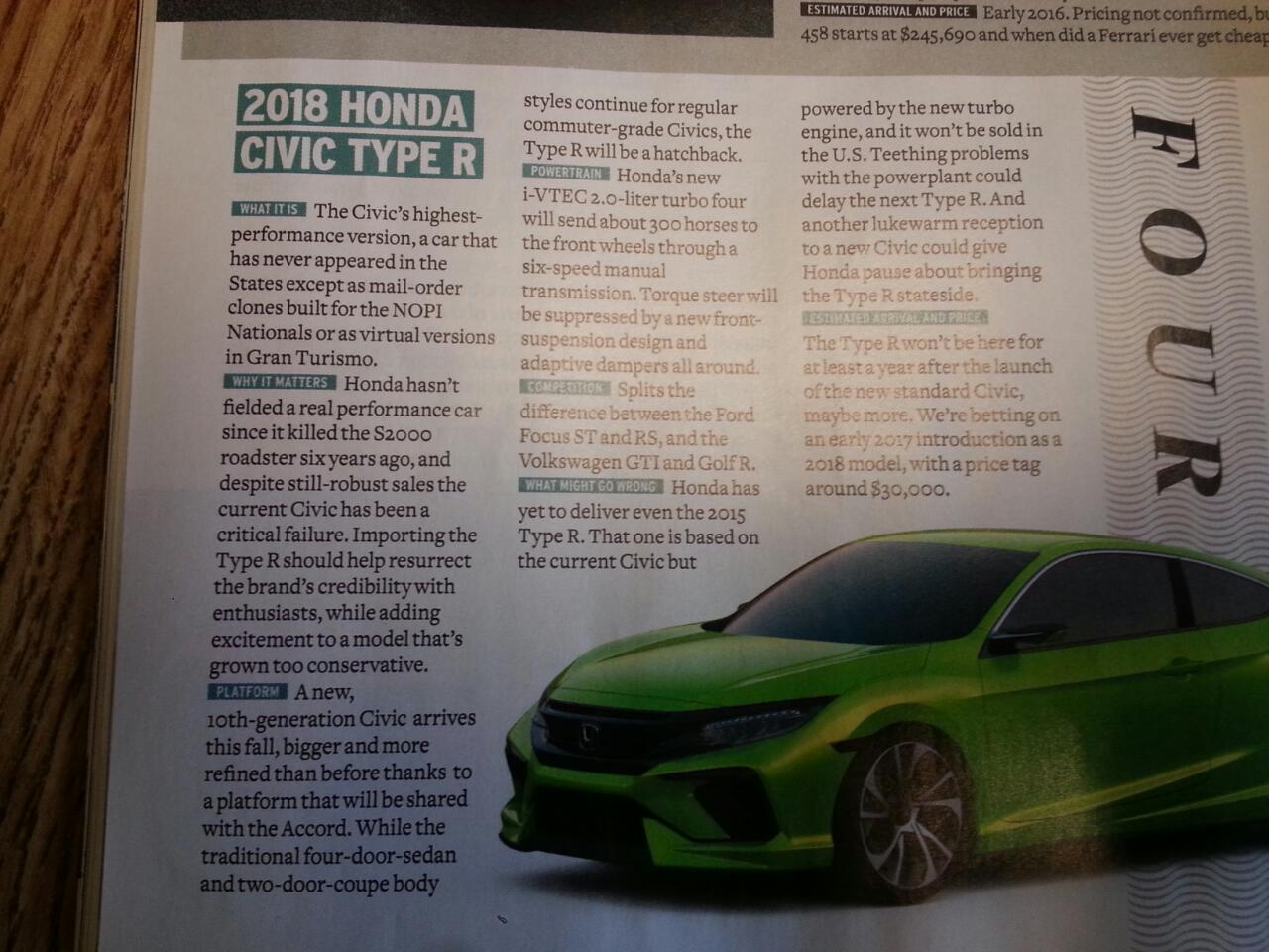 You didn't read anyting about offical #s for the civic type r that will be coming to the states. Because there has been nothing on it except: The states will be getting a type r in a couple of years.