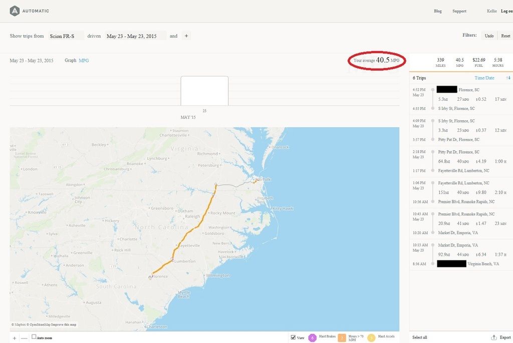 Nice OP! Don't be surprised by the MPG, I too had a similar experience. My husband and I recently moved back from central Florida to northeast Atlanta. We paper, rock, scissored for who would drive the FRS and I lost (the FRS is my DD). We averaged about 65-70mph over the course of the 450 mile journey north in he first week of August last year. He was born and raised in the windy city of Chicago, so southern summer heat is not his thing. So he had the A/C on full blast and I followed him in the moving truck. I had to refill that darn truck twice and the FRS still had about 2 gallons left by the time we made it to our new place as the refuel light came on 2 blocks from our destination.