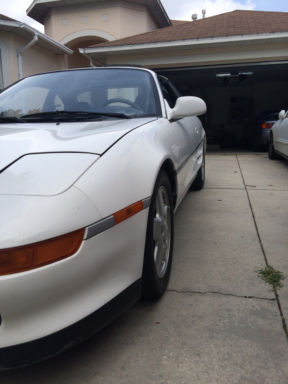 Since I'm always looking for good deals on MR2 parts I generally check the MR2 forums every few days or so (as good deals move fast). I happened to see a thread title as the most recent thread that mentioned a 93 White MR2 Turbo for sale.. clicked.. and it had no pics but seemed cheap (mostly due to the blue interior...).