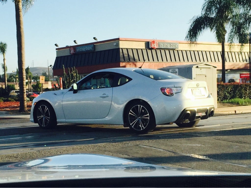 My mom, driving a different car and following me, was like "Did you know that you had a white FRS following you to Diamond Plaza?" Lol