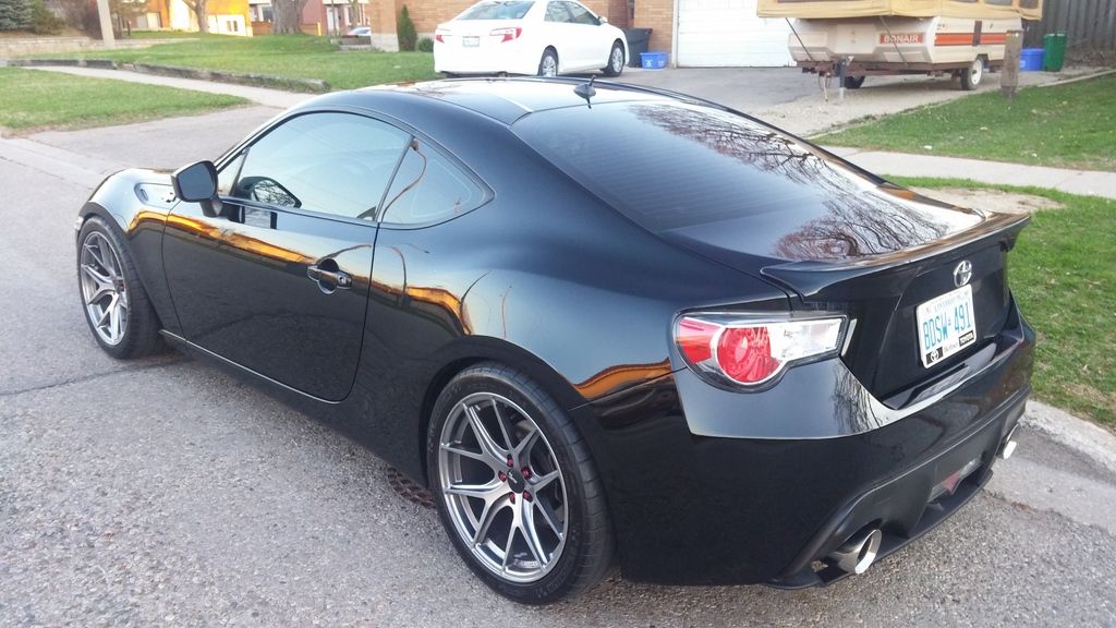 Wheel specs are 18x9 et30. Perfect flush fitment. Wheels are lightweight, weighing only 17lbs. They are less than 3 months old and are in mint condition. Michelin PSS Tires are 265/35/18 already mounted to wheels. One tire has rubber missing close to the sidewall but mechanics said it's not leaking air. The rear tires have slight rubbing marks. Tread left on them is 7/32. Looking at $1000 for the set or I will do a swap with someone to OEM wheels with good tire tread left plus $400 on buyers end. Reason for selling is because I'm trading in the FRS. ![]() ![]() Located in Kitchener. Thanks! Last edited by sal; 07-13-2015 at 07:50 PM. |
