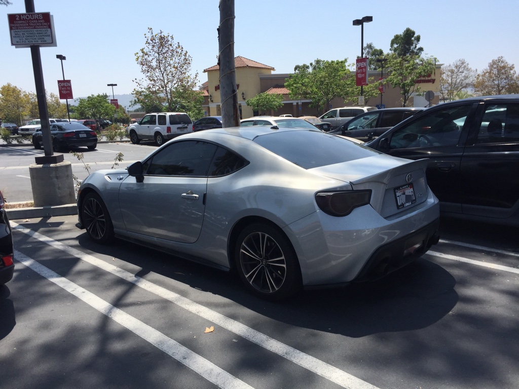 Saw another silver frs with aftermarket duck tail and smoked OEM tail lights parked near CVS Pharmacy / Le Pot at the intersection of Nogales St and La Puente Rd in Rowland Heights around 1:11pm on Saturday August 22. Saw this car a couple times: