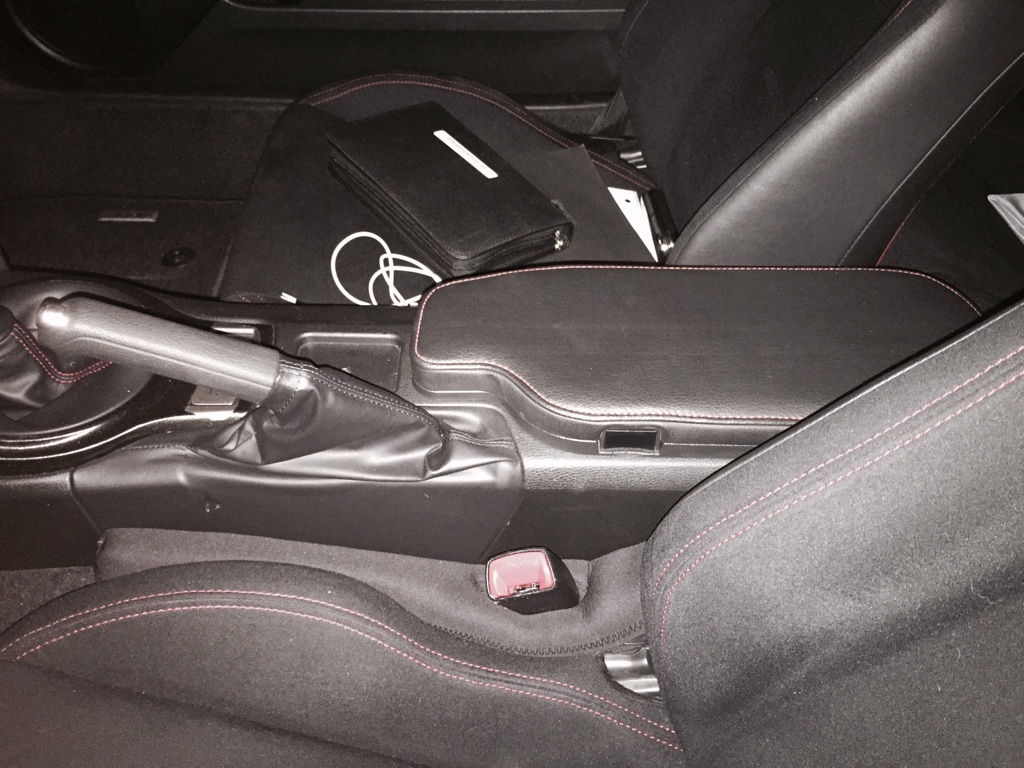 Euro spec OEM Armrest. We'll need to swap center consoles since it would leave me with holes if we just pull it. Mint condition and it's just awesome. My center console has a hole where I mounted a bass knob in that heated seats switch area or plaque holder depression thingamajiggy $150