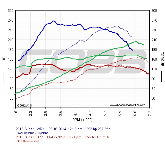let's forget about the REAL WORLD conditions (healthier hp due to OEM power, less heat, better matched gear) for a second and concentrate on the" dyno queens " for a second do you actually believe that 500 lbs is enough to make up for the TQ difference down low.. I did my best to include an NA E85 dyno plot with green line in the below dyno comparison ... notice that huge TQ difference in blue and green lines and you'll understand why .. if you still think that it should keep up with an WRX slowly drop the crack pipe you were referring to