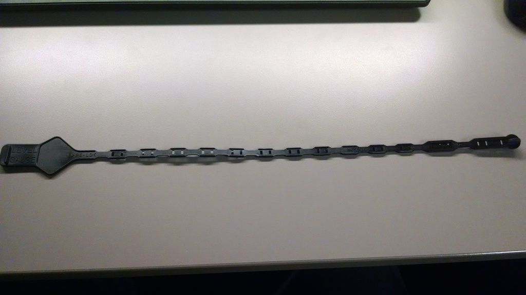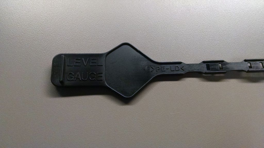 Says 'Level Gauge', '>PE-LD<' then further down there is an indicator for 'Normal' and 'Low'.