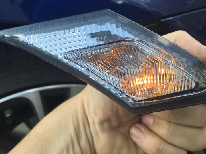 Was surprised and received my Light Smoke Helix sidemarkers, finally got rid of those ugly amber markers The first pic is the OEM bulb with the marker then with the LED, also the light smoke seems to blend in nicely with blue, and a night shot :] Just backup and fog light left to go and I'm 100% LED