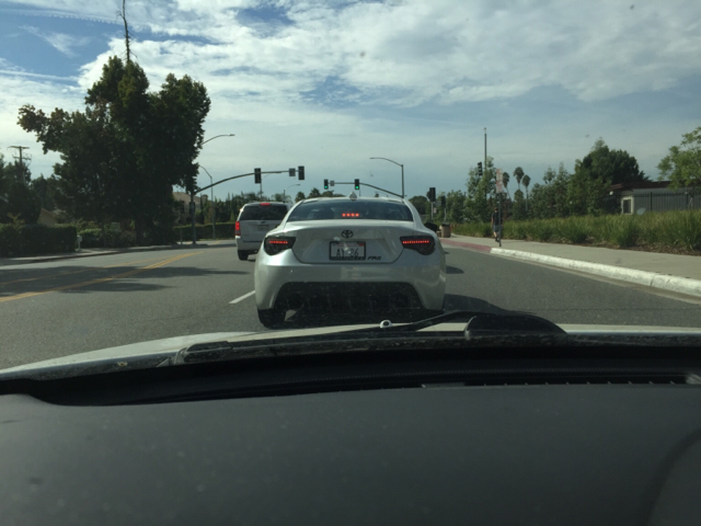 Spotted white FR-S with TRD stickers on the trunk on the 10 West near Peck Road Exit around 12 Midnight. Gave you the thumbs up and then took off.