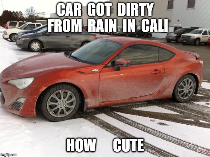 We dont get rain in California. So idiots, like myself, take really good care and go into detail about cleaning their car and then when it rains it suprises all of us.