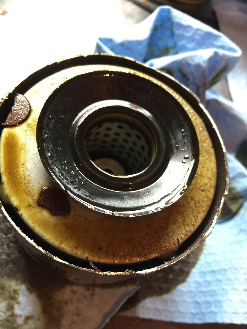 When changing my engine oil, I came across a piece of rubber foreign matter in my filter. It was lodged in one of the five small holes in the filter, but I pulled it out for this picture. I am not 100% certain where it came from, so I cut open the filter and verified it wasn't a piece of the insides of the filter.