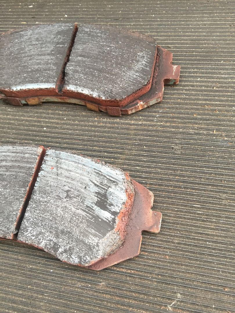 Swapping my pads back out after the track this weekend, I noticed this. Never had any brake fade at all, stayed out of ABS almost entirely. Its on both front outboard pads. The pads are Project Mu RSF 01A. Stock calipers. My current theory is using them cold on the way home from the track they maybe got too brittle?